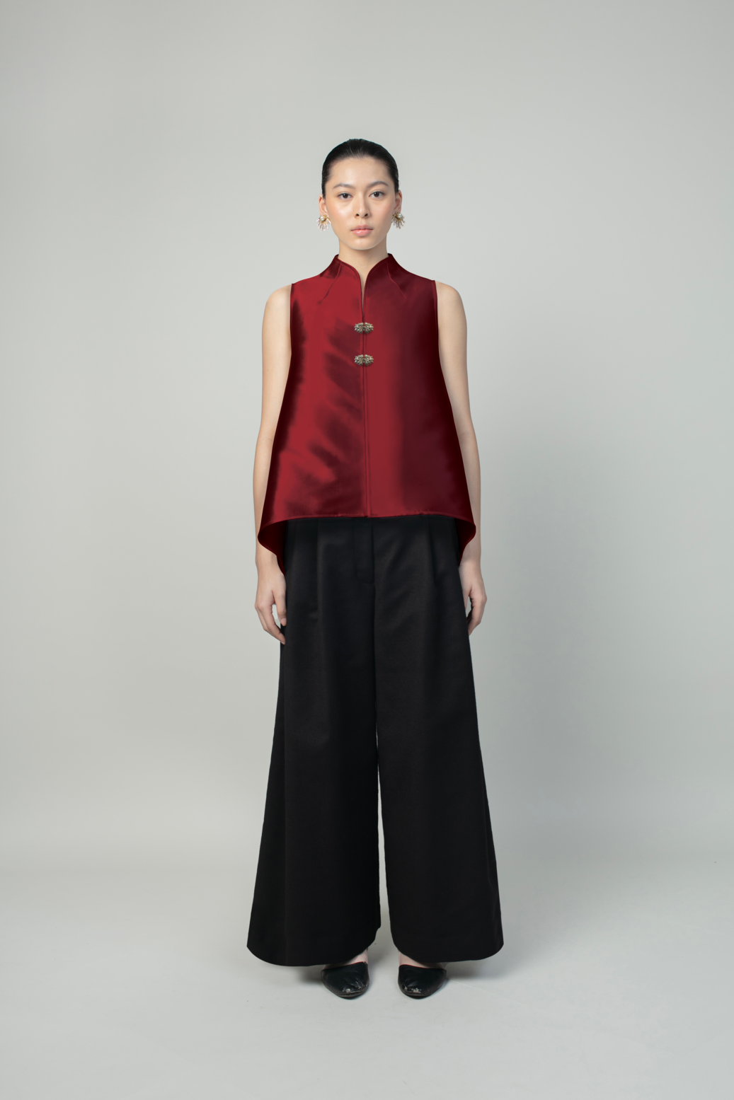 Black Crepe Imperial Collar Sleeveless Top Women